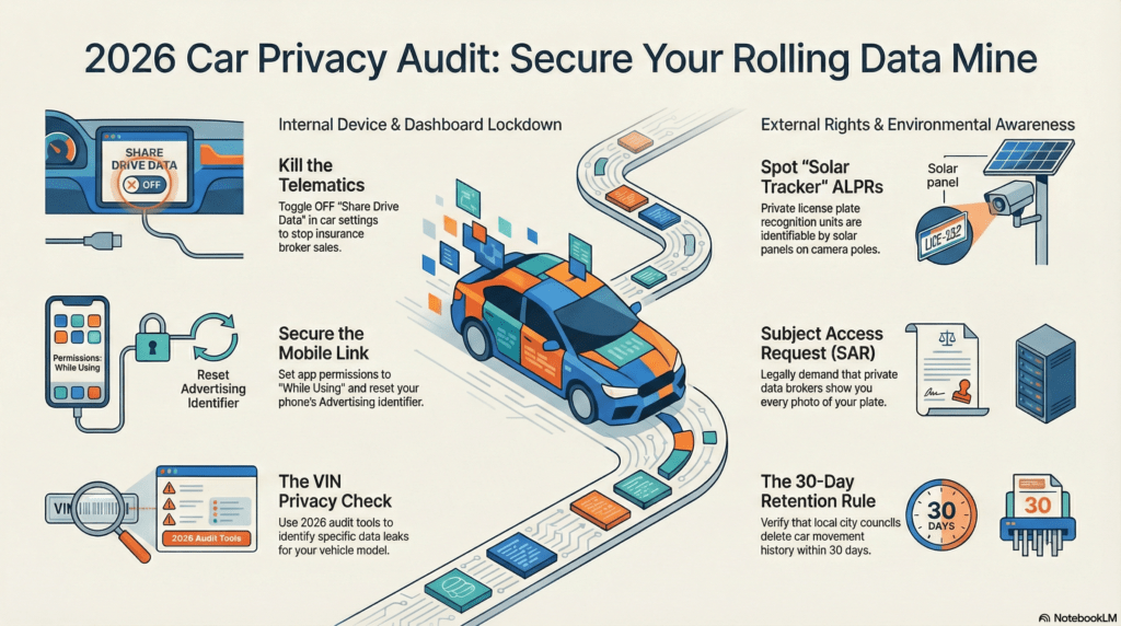 Every time you drive your vehicle, for example, you are dropping a trail of digital breadcrumbs. From the solar-powered cameras at your neighborhood entrance to the “always-on” location settings in your favorite weather app, your car is constantly broadcasting your lifestyle, your politics, and your secrets.